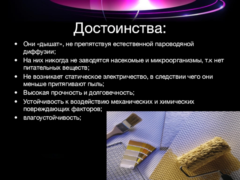 Достоинство виниловых обоев : моющие, прочные и долговечное покрытие.