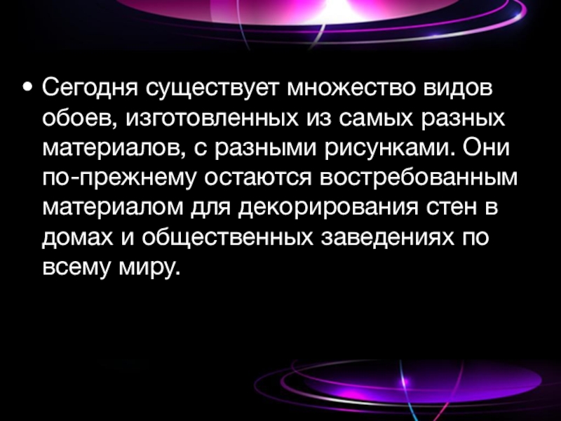 Слайд 3Сегодня существует множество видов обоев, изготовленных из самых разных материалов, с