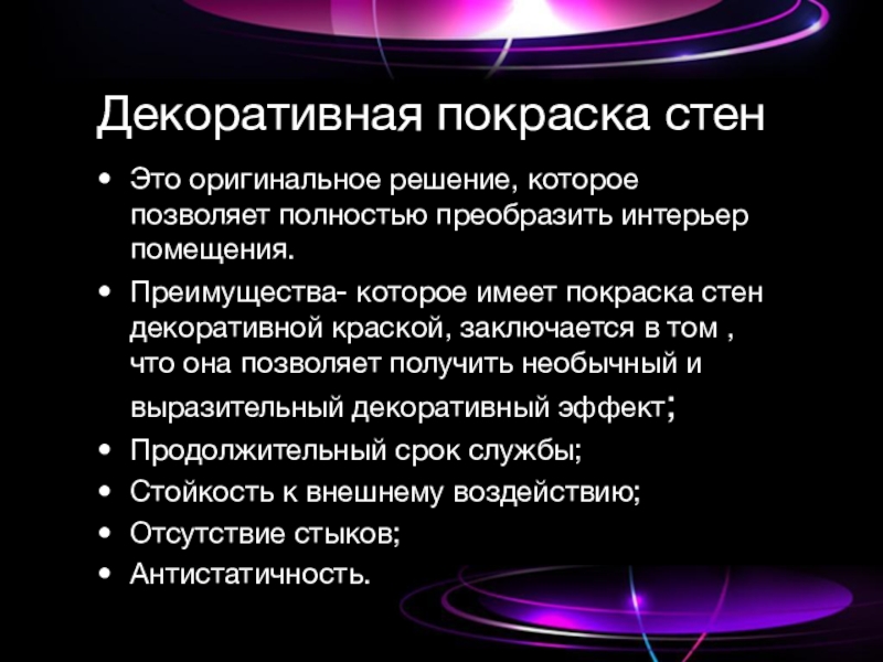 которое имеет покраска стен декоративной краской, заключается в том , что она позволяет получить необычный и выразительный декоративный эффект;