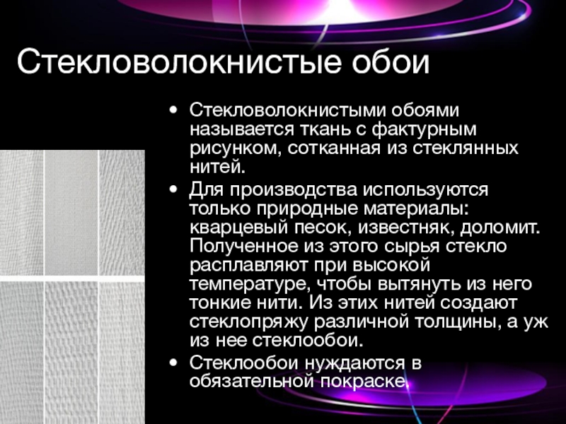 Стекловолокнистыми обоями называется ткань с фактурным рисунком, сотканная из стеклянных