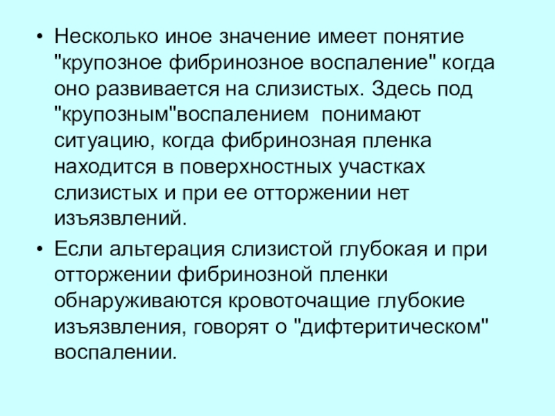 Несколько иное значение имеет понятие "крупозное фибринозное воспаление" когда оно развивается