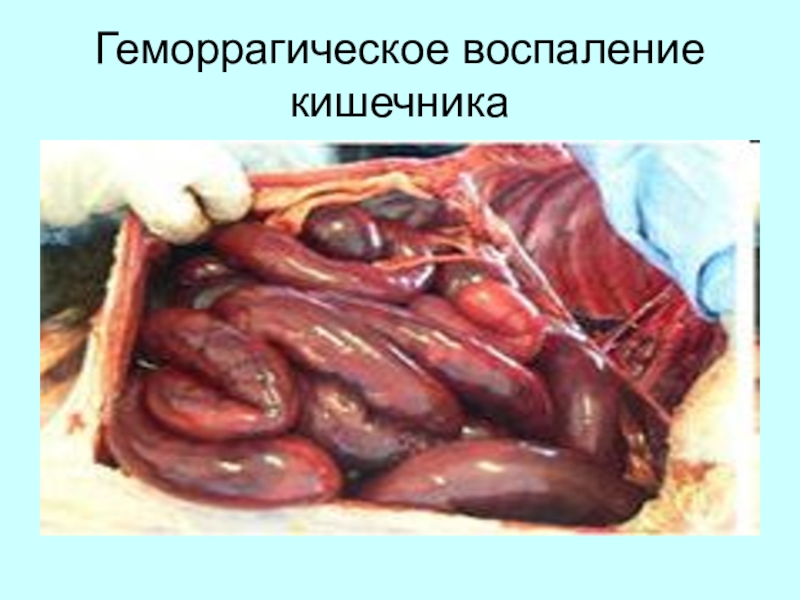 Слайд 33Геморрагическое воспаление кишечника