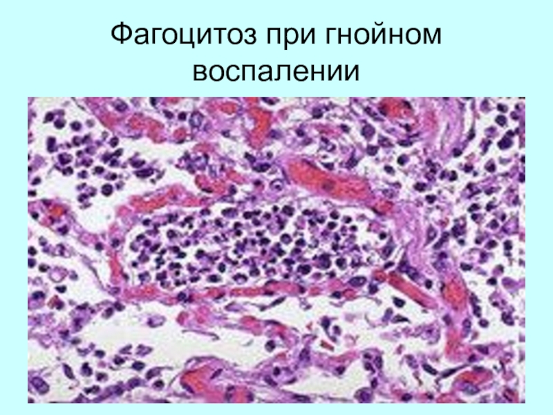Слайд 10Фагоцитоз при гнойном воспалении