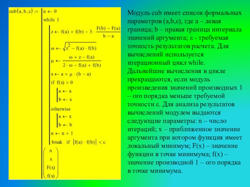 Слайд 11Модуль cub имеет список формальных параметров (a,b,), где а – левая