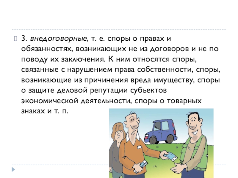 Слайд 53. внедоговорные, т. е. споры о правах и обязанностях, возникающих не