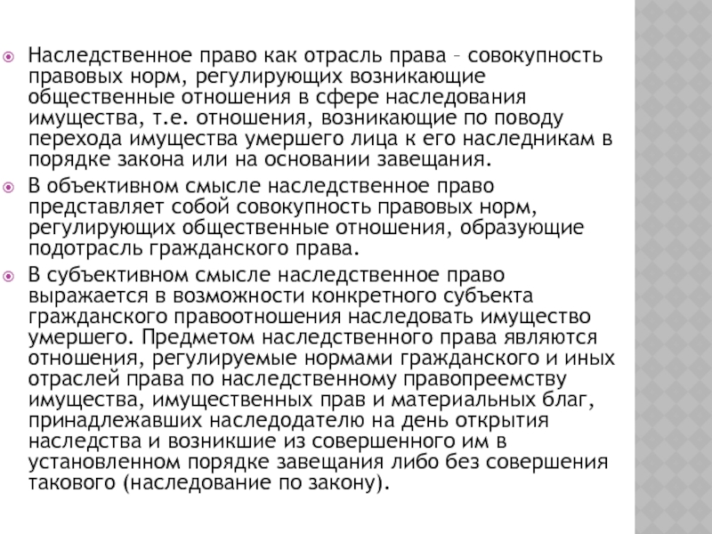 Слайд 2Наследственное право как отрасль права – совокупность правовых норм, регулирующих возникающие
