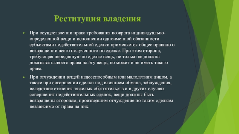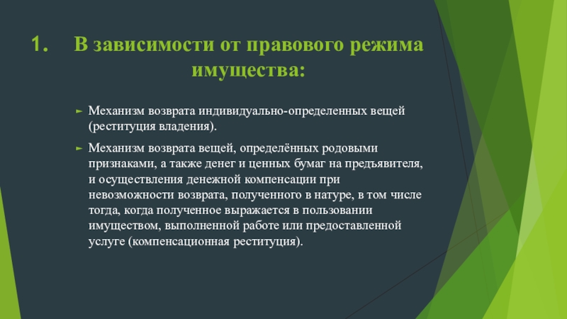 Механизм возврата индивидуально-определенных вещей (реституция владения).