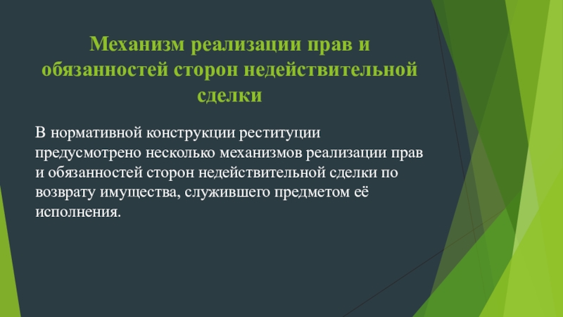 Слайд 10Механизм реализации прав и обязанностей сторон недействительной сделки