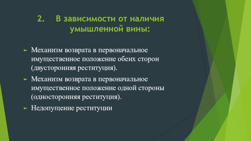 Механизм возврата в первоначальное имущественное положение одной стороны (односторонняя реституция).