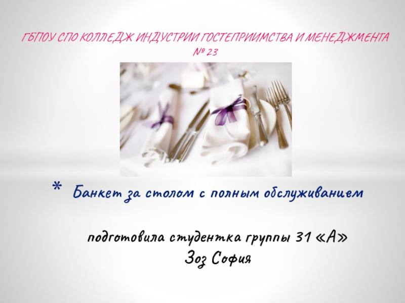 Слайд 1ГБПОУ СПО КОЛЛЕДЖ ИНДУСТРИИ ГОСТЕПРИИМСТВА И МЕНЕДЖМЕНТА № 23
