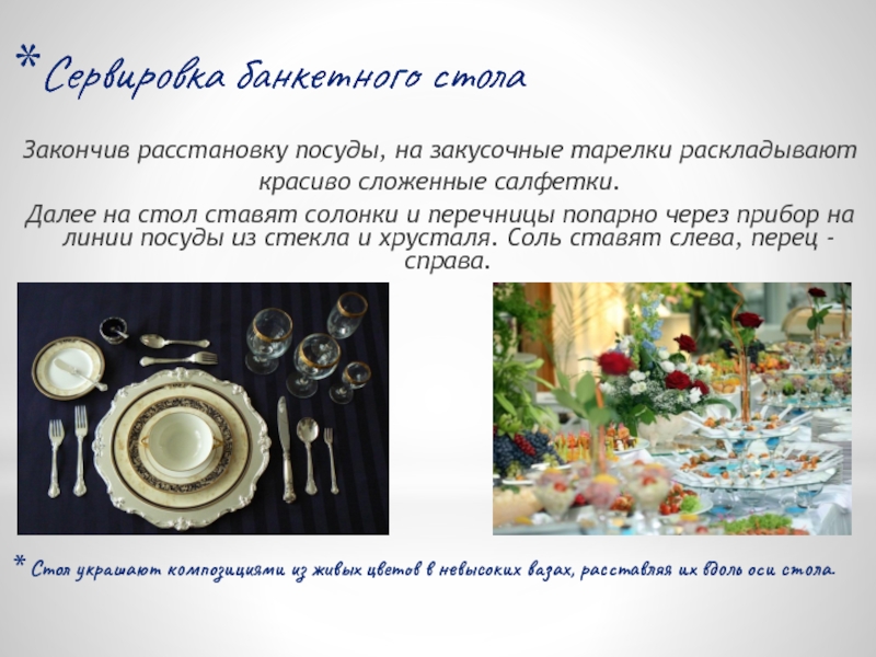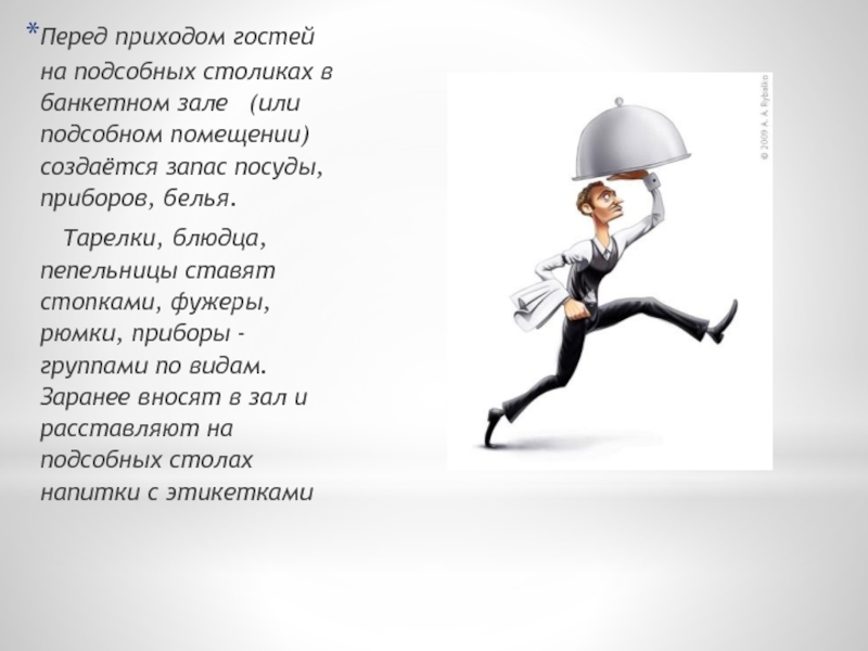 Слайд 12Перед приходом гостей на подсобных столиках в банкетном зале (или