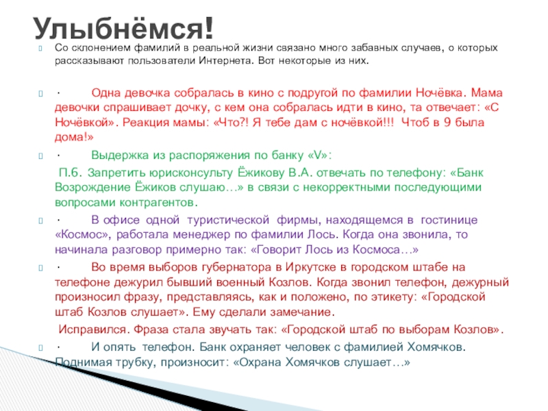 9. Фамилии, совпадающие с нарицательными существительными
