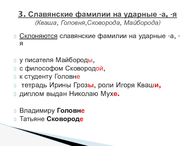 3. Славянские фамилии на ударные -а, -я