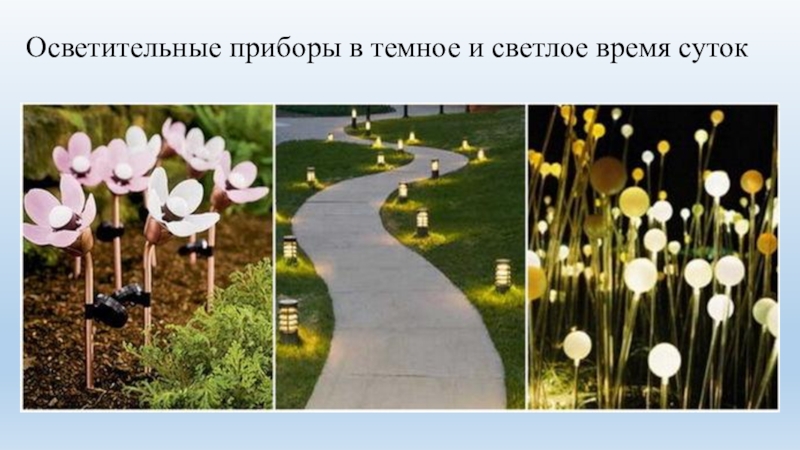 Слайд 4Осветительные приборы в темное и светлое время суток