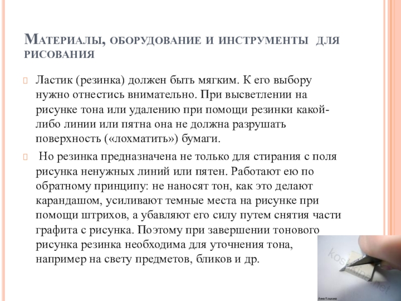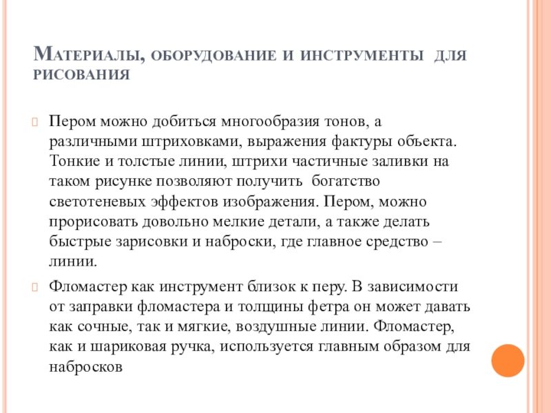Слайд 1Материалы, оборудование и их применение в рисунке