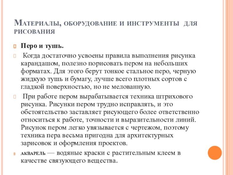 Слайд 10Материалы, оборудование и инструменты для рисования