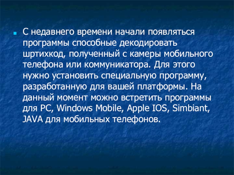 Слайд 2С недавнего времени начали появляться программы способные декодировать шртихкод, полученный с