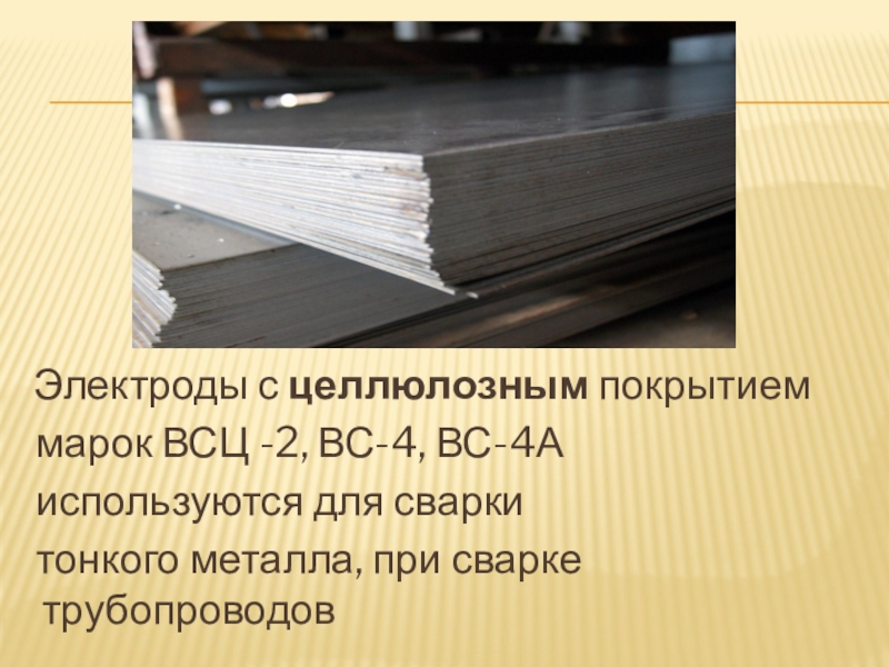 Электроды с целлюлозным покрытием  марок ВСЦ -2, ВС-4, ВС-4А   используются для сварки