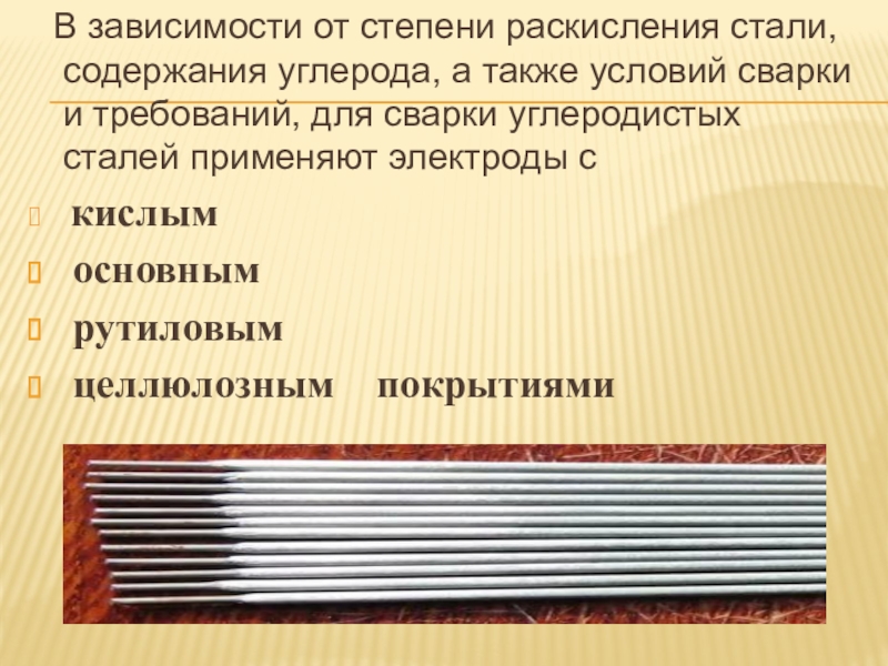 также условий сварки и требований, для сварки углеродистых сталей применяют электроды с