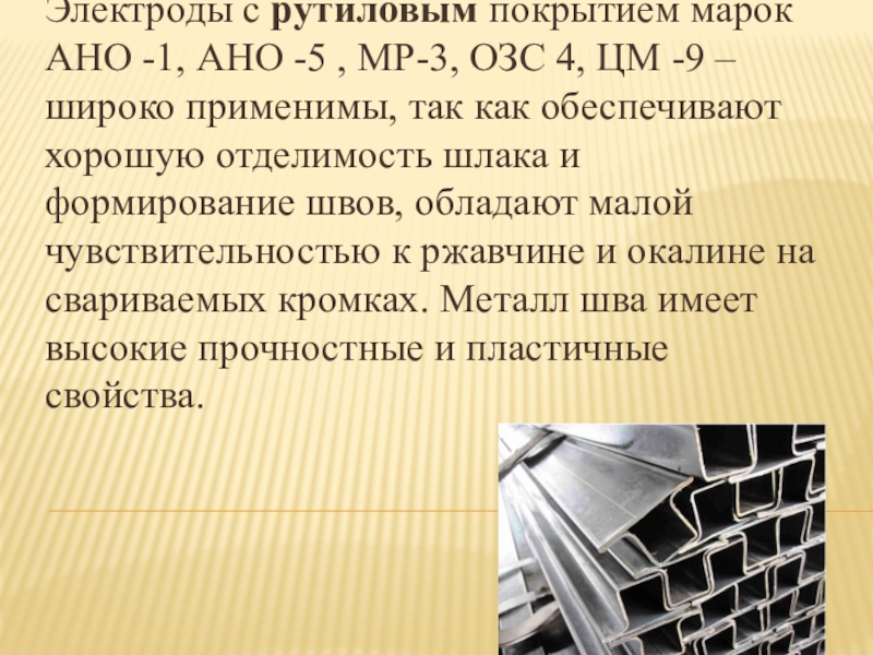 Электроды с рутиловым покрытием марок АНО -1, АНО -5 , МР-3, ОЗС 4, ЦМ -9 – широко