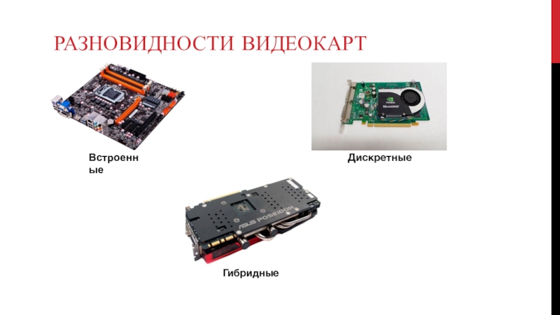 Разновидности видеокартВстроенныеДискретныеГибридные