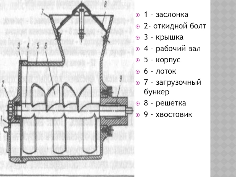 машину выключают и разбирают. Для извлечения шнека, ножей и
