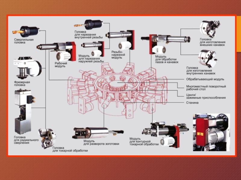 • станок с поворотным столом. Это агрегатный станок барабанного типа, у которого стол может вращаться относительно как вертикальной, так и горизонтальной оси;