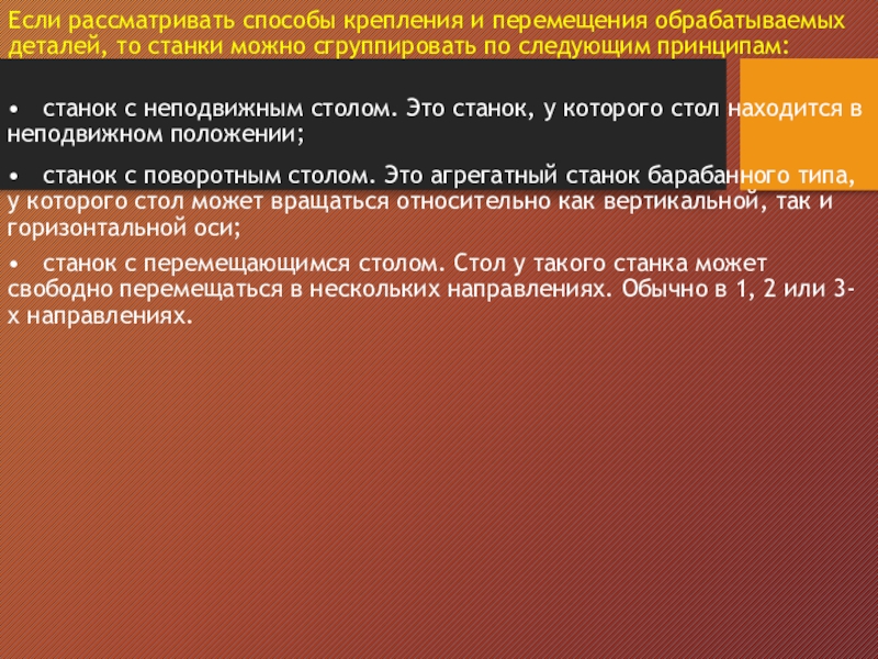 3. По способу крепления и передвижению заготовки классификация разделяет станки на следующие виды: