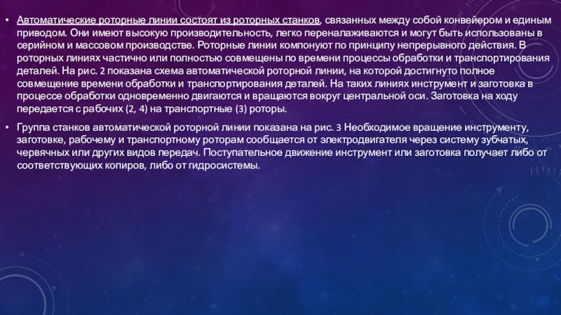 Слайд 10Автоматические роторные линии состоят из роторных станков, связанных между собой конвейером