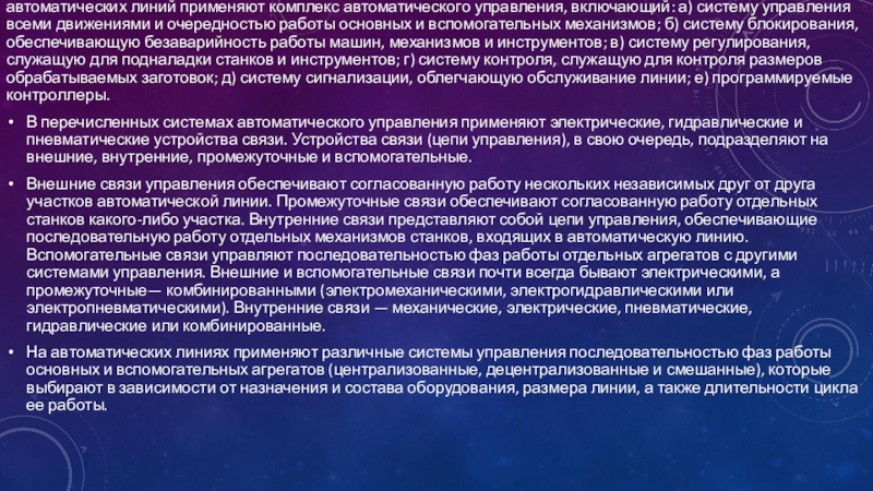 Слайд 7Система управления автоматическими линиями: Для последовательной работы всех механизмов автоматических линий
