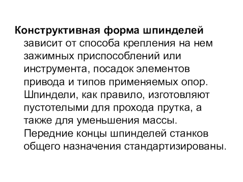 Слайд 4Конструктивная форма шпинделей зависит от способа крепления на нем зажимных приспособлений
