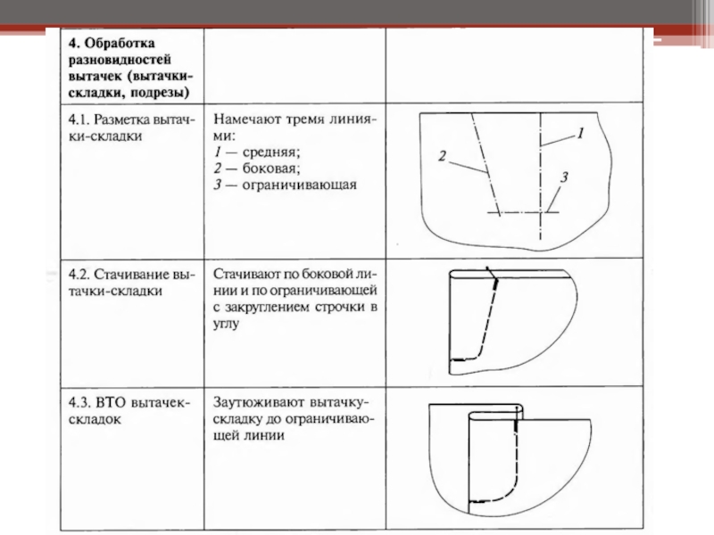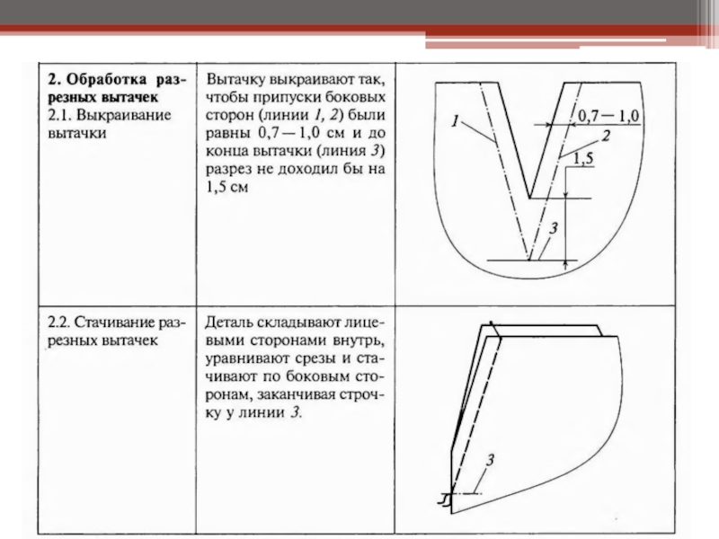 Начальная обработка швейного изделия.  Обработка срезов. Обработка вытачек, подрезов.