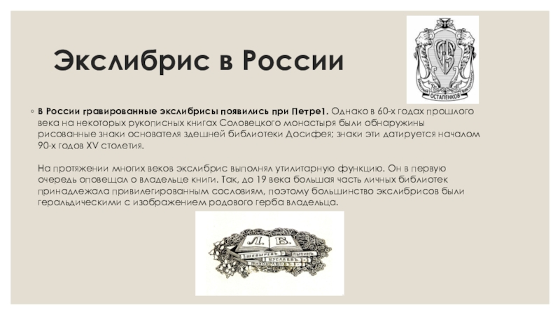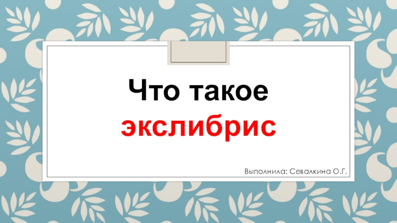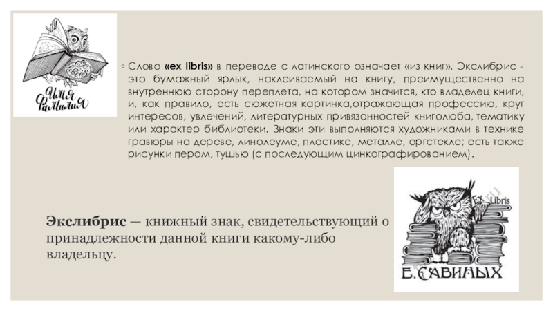 Экслибрис — книжный знак, свидетельствующий о принадлежности данной книги какому-либо владельцу.