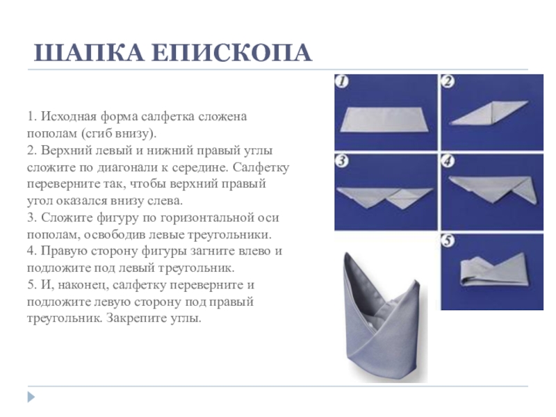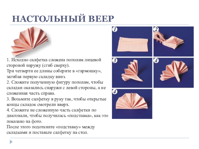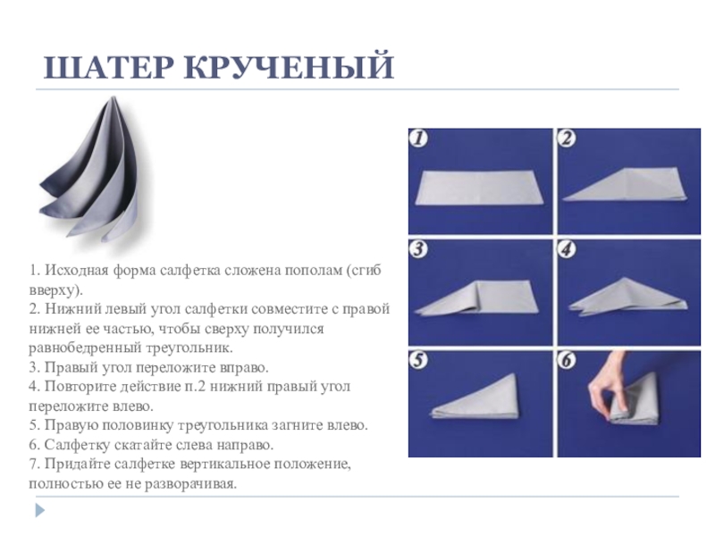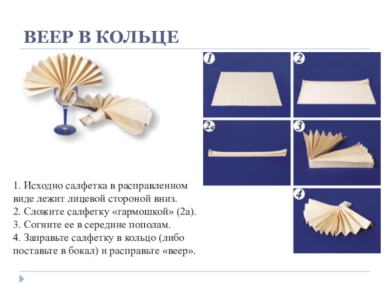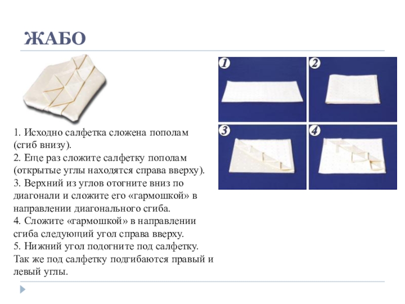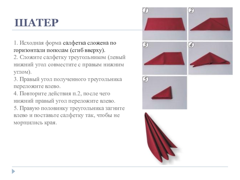 Слайд 1ФОРМЫ СКЛАДЫВАНИЯ САЛФЕТОК