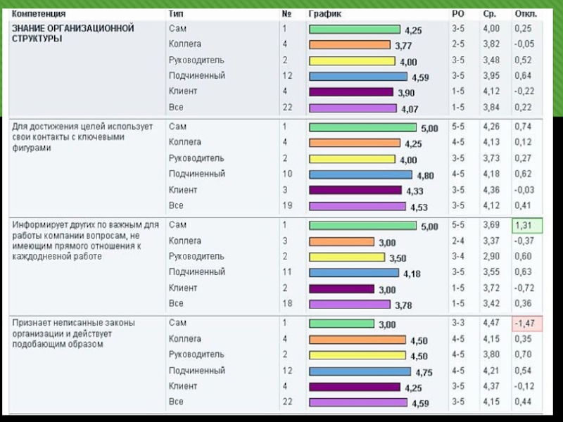 Метод оценки компетентности работника (коллектива). Сотрудника оценивают 4 группы: