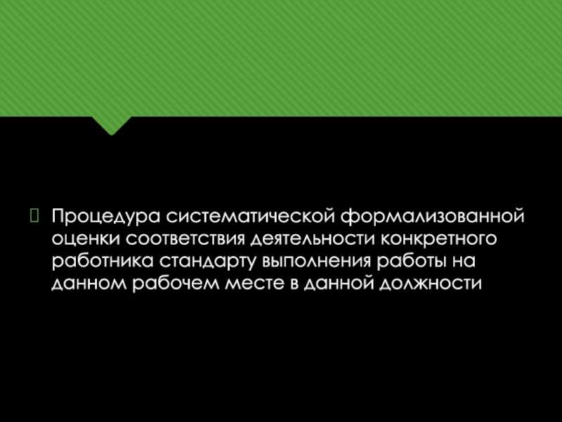 Слайд 22Процедура систематической формализованной оценки соответствия деятельности конкретного работника стандарту выполнения работы