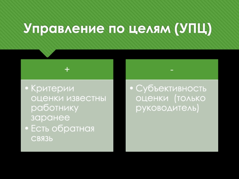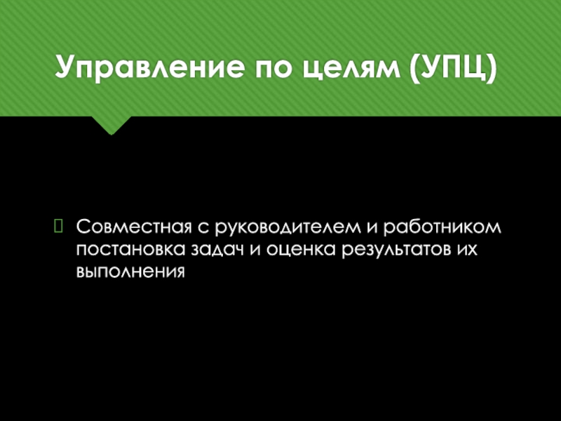 Управление по целям (УПЦ)Совместная с руководителем и работником постановка задач и оценка результатов их выполнения