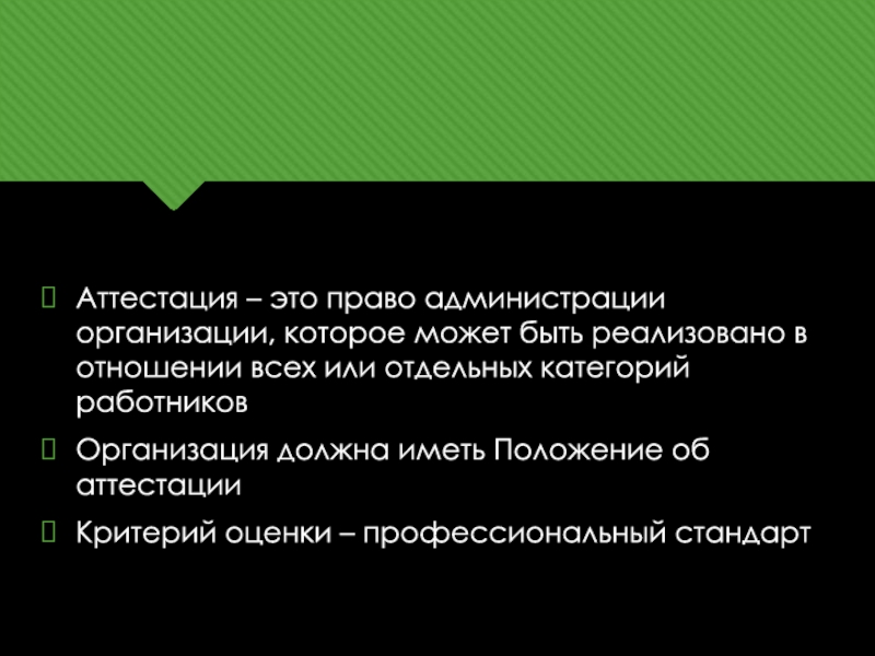 Слайд 24Аттестация – это право администрации организации, которое может быть реализовано в
