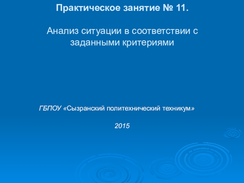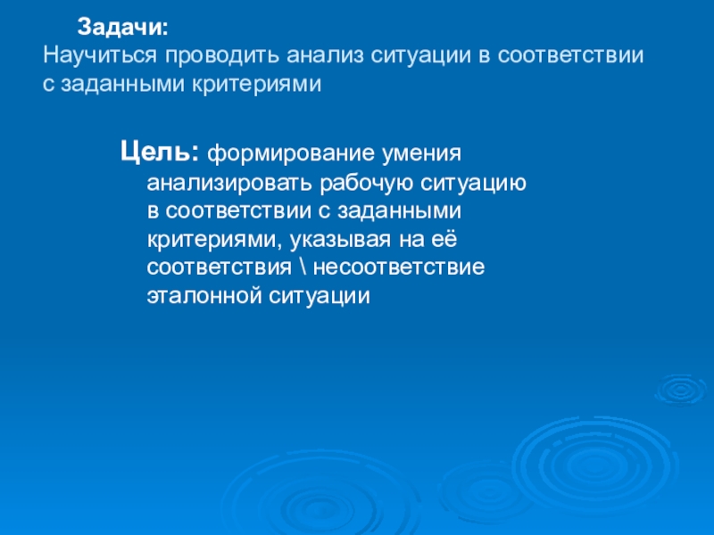 Научиться проводить анализ ситуации в соответствии