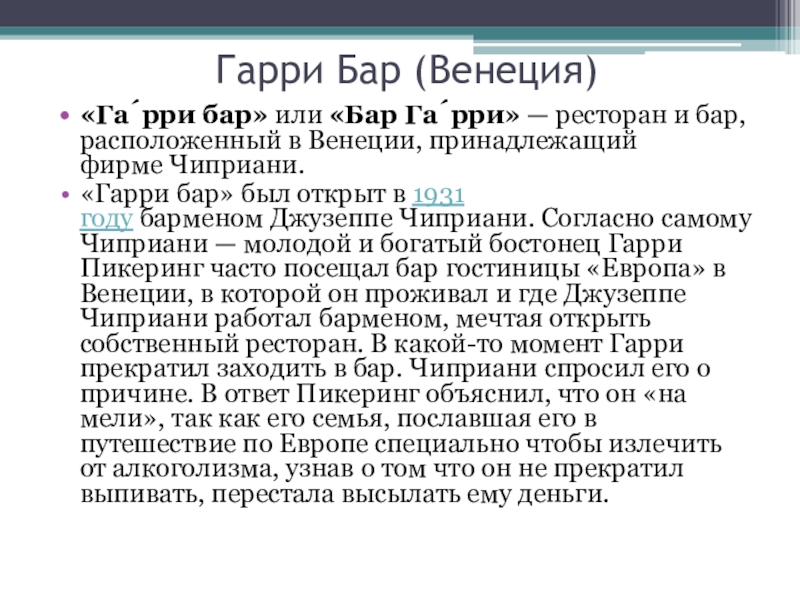 «Га́рри бар» или «Бар Га́рри» — ресторан и бар, расположенный в Венеции, принадлежащий фирме Чиприани.