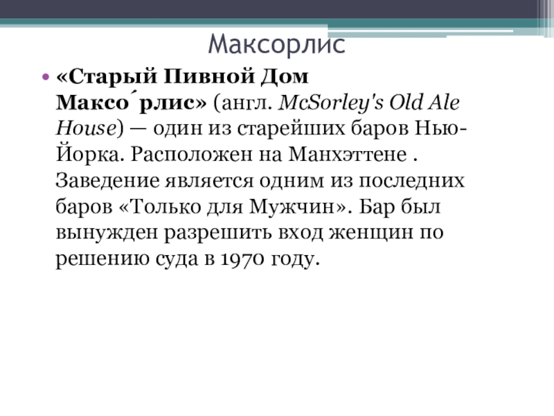 «Старый Пивной Дом Максо́рлис» (англ. McSorley's Old Ale House) — один из