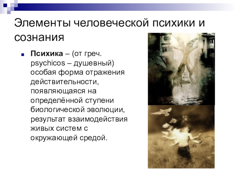 особая форма отражения действительности, появляющаяся на определённой ступени биологической эволюции, результат взаимодействия живых систем с окружающей средой.