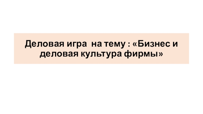 Слайд 1Деловая игра на тему : «Бизнес и деловая культура фирмы»