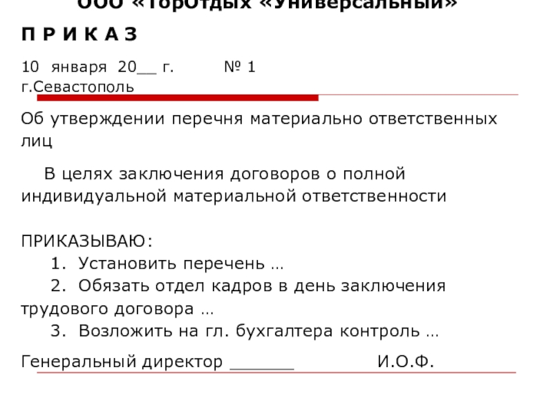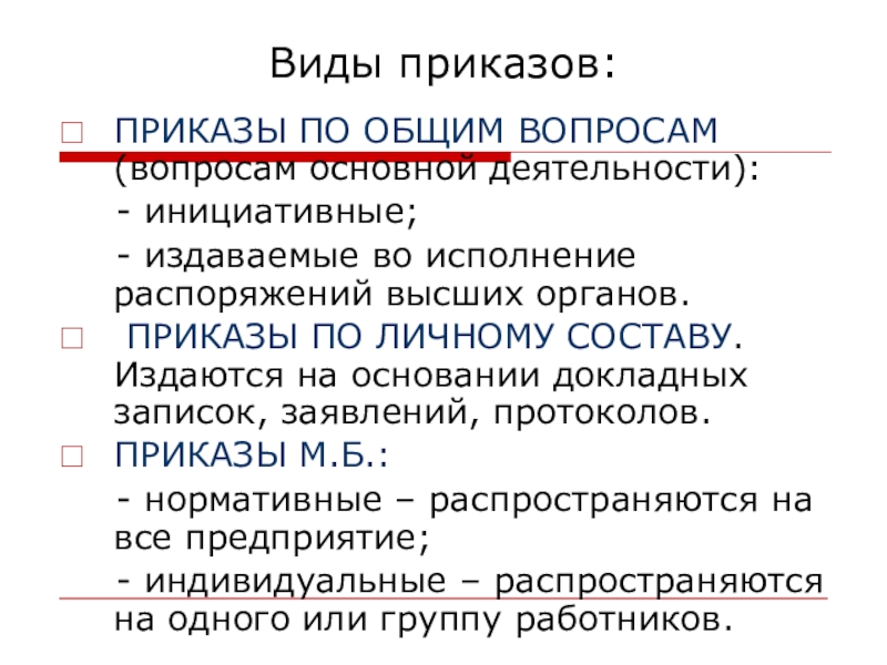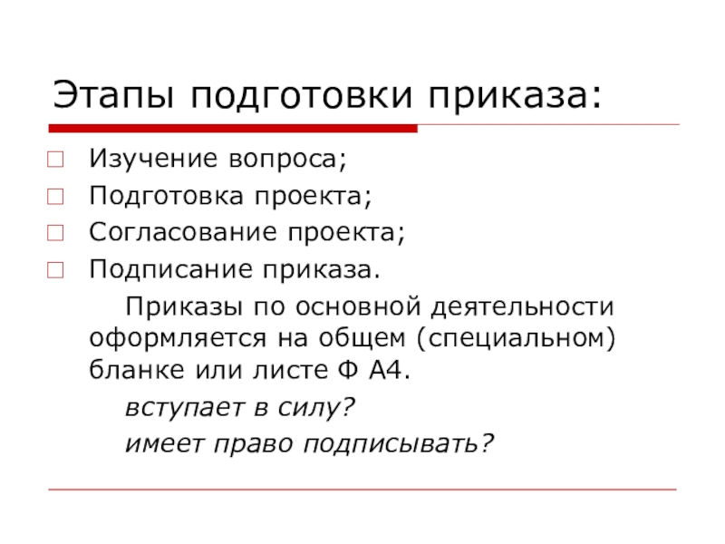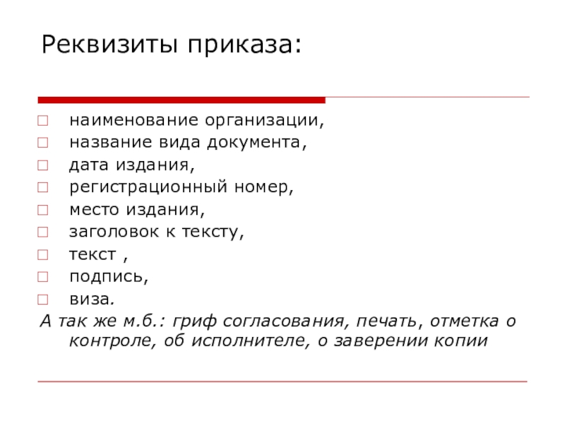 Слайд 31. Приказы. Понятие, порядок создания и структура, реквизиты.