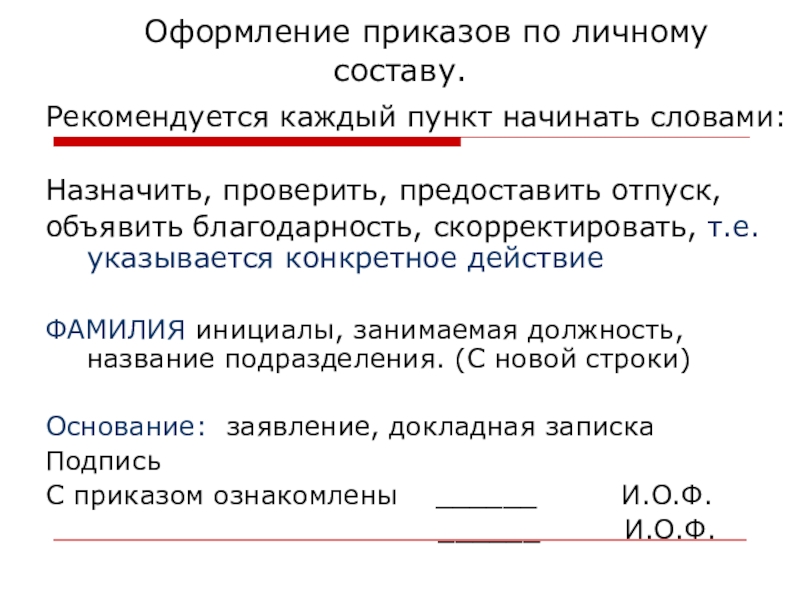 ПРИКАЗЫ ПО ЛИЧНОМУ СОСТАВУ. Издаются на основании докладных записок, заявлений, протоколов.