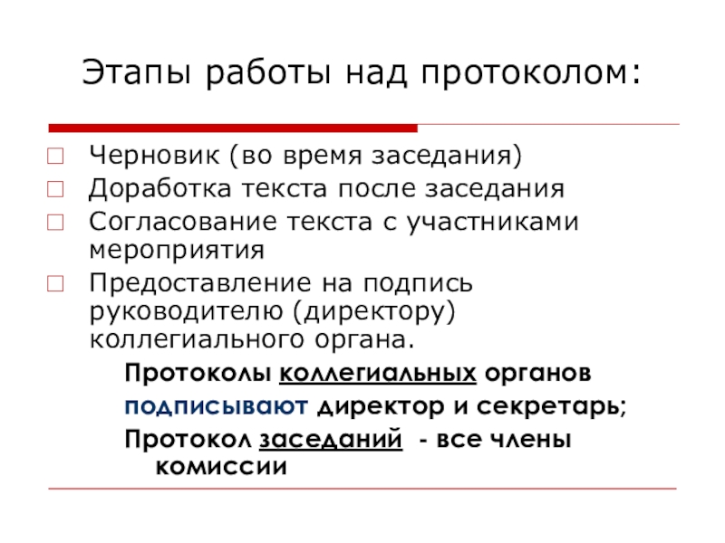 и результаты постоянно и временно действующих коллегиальных органов, фиксирует проведение разных сборов, заседаний, совещаний.