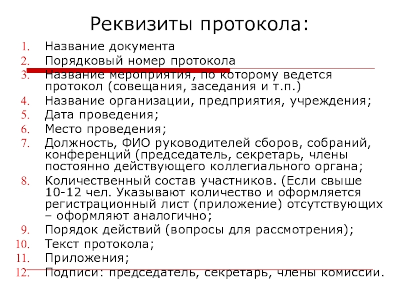Слайд 153. Протокол: понятие, реквизиты и структура.