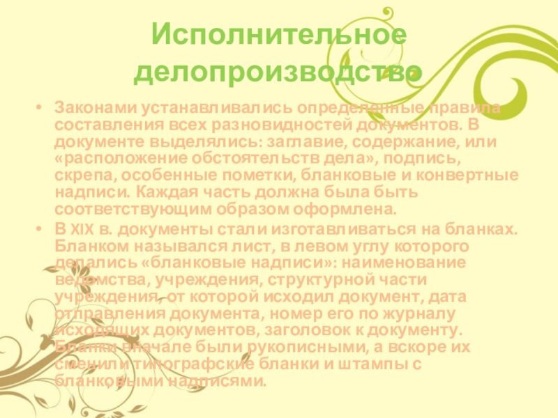 Слайд 18В исполнительном делопроизводстве сложился и определенный порядок составления документов. Во многом