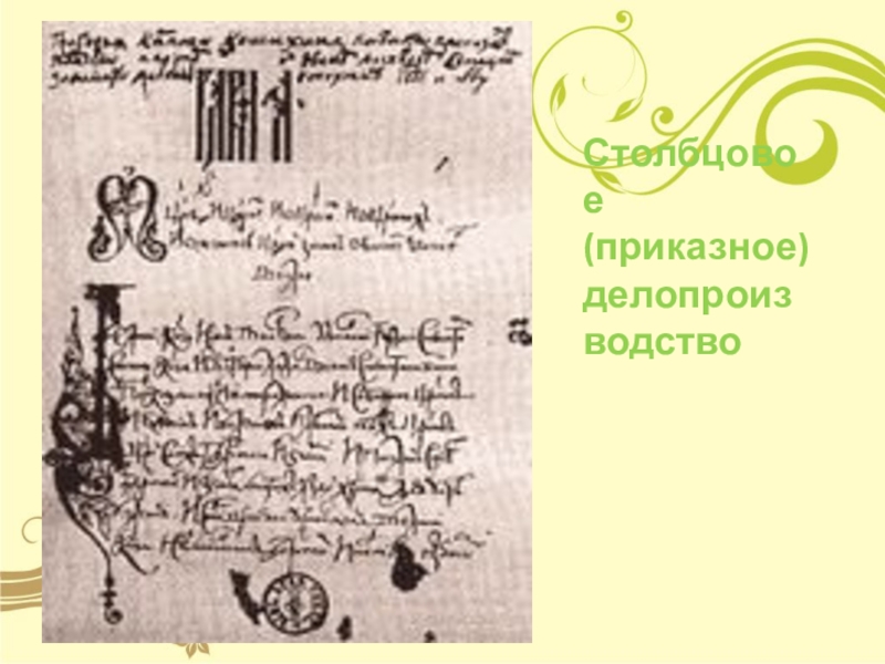 Слайд 6Столбцовое (приказное) делопроизводство