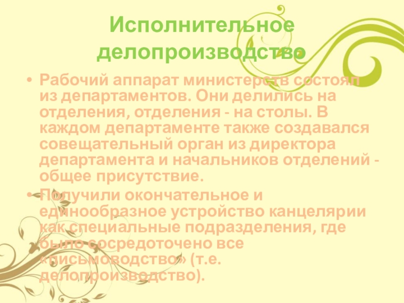 Слайд 16Рабочий аппарат министерств состоял из департаментов. Они делились на отделения, отделения